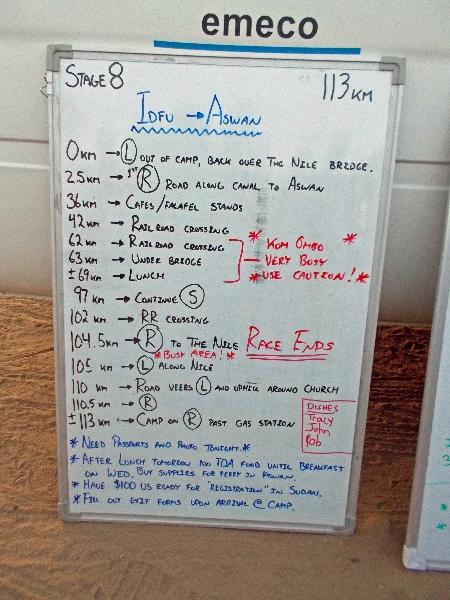 Our campsite was next to a dusty soccer field in Idfu. By 5am, the minarets were calling out to prayer. Not long thereafter, time to wake up and pack everything together for the ride.