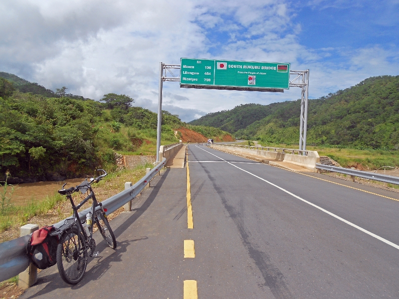 From here we descended a few kilometers and then followed the South Rukuyu river through a valley. It was very lush with mixture of crops including tobacco, bananas and corn. Lunch was a welcome break at 71km.